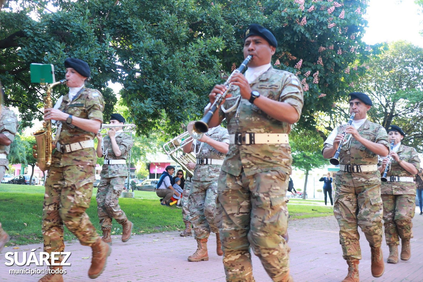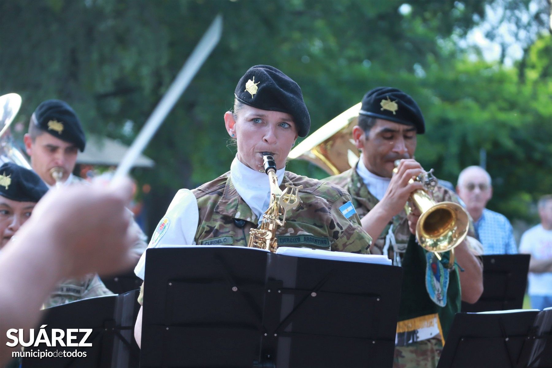 Familias, amigos, ex integrantes y la comunidad en general siguió con sus miradas el tradicional desplazamiento y ubicación al pie del monumento al Coronel Isidoro Suárez donde acompañados por la Banda Militar “Curamalal” RIM3 brindaron un concierto en el marco de los festejos por el 62° aniversario de la institución.