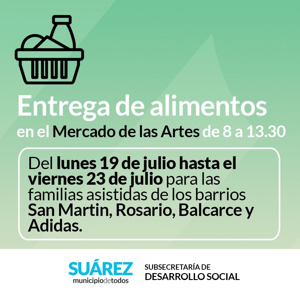 Hasta el 23 de Julio, la entrega de alimentos secos será para las familias asistidas de los barrios San Martín, Rosario, Balcarce y Adidas.