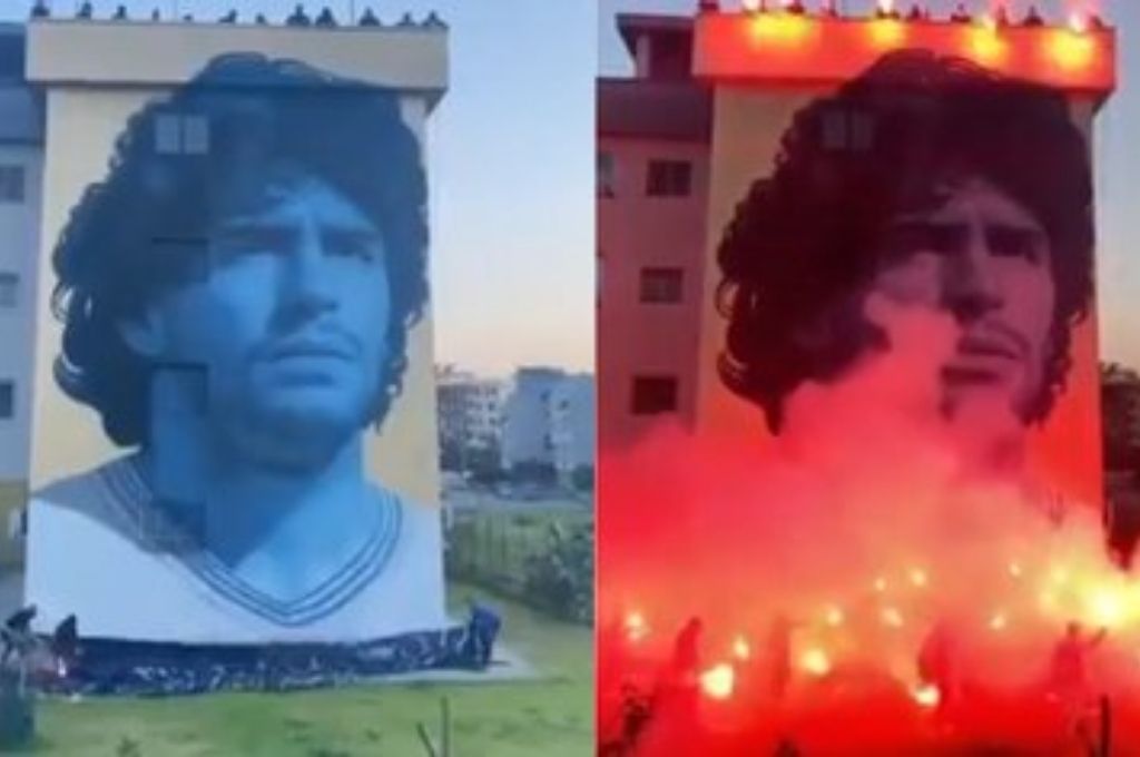 Este último fin de semana se sumó a la paredes de la ciudad un nuevo mural que rinde honor a la memoria del Diez. La presentación de la flamante obra de arte fue acompañada de un nutrido grupo de simpatizantes del Napoli, quienes dieron un impactante show.