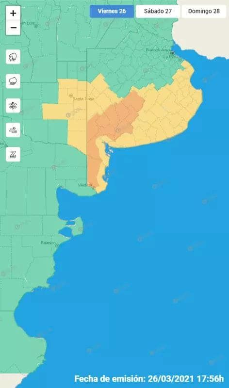 Seguimos bajo alerta naranja para la mañana de hoy y luego hacia la tarde de color amarillo