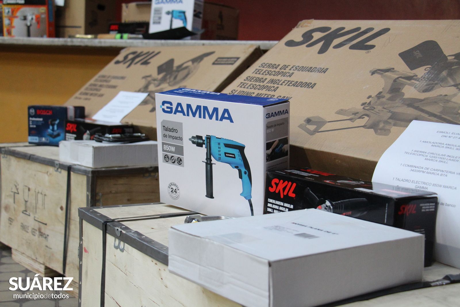 El programa apunta a fortalecer y potenciar la producción y el trabajo: amoladoras, soldadoras eléctricas, máquinas de coser, hormigoneras, taladros eléctricos, cortadoras de cerámicos, lijadoras, escaleras fueron algunas de las maquinarias entregadas.