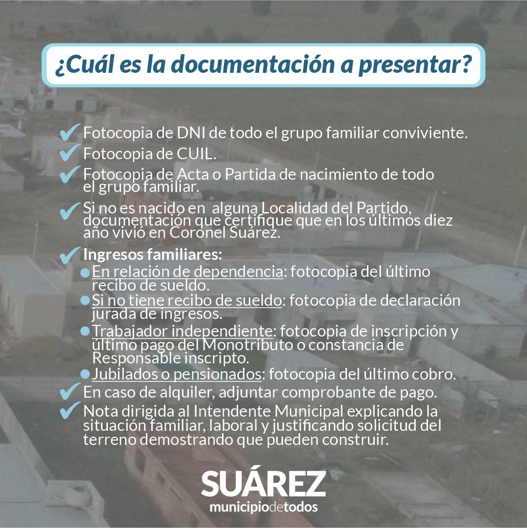Más información en las oficinas del Instituto de la Vivienda: avenida Alsina 132. Cel.: 2926544578. Tel: 429228/306/253. Horario de 8 a 13.
