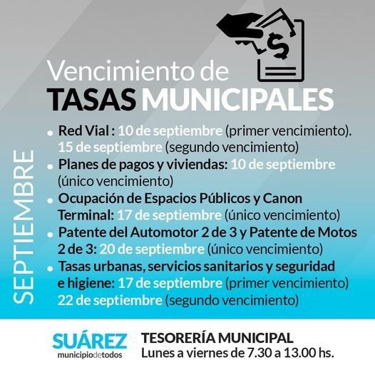 Vencimiento de tasas municipales del mes de septiembre