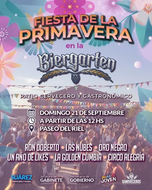 Este domingo 21 de septiembre, desde el mediodía hasta la noche, te esperamos en al Paseo del Riel para recibir a la Primavera con una nueva edición de la Biertgarten, un encuentro pensado para vos, para tu familia y para tus amigos, en un trabajo en equipo entre el Municipio y privados que la rompen, totalmente GRATUITO